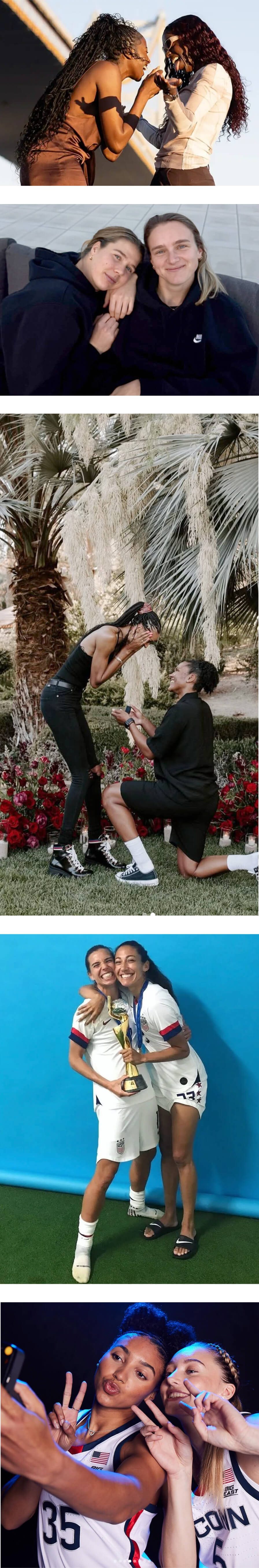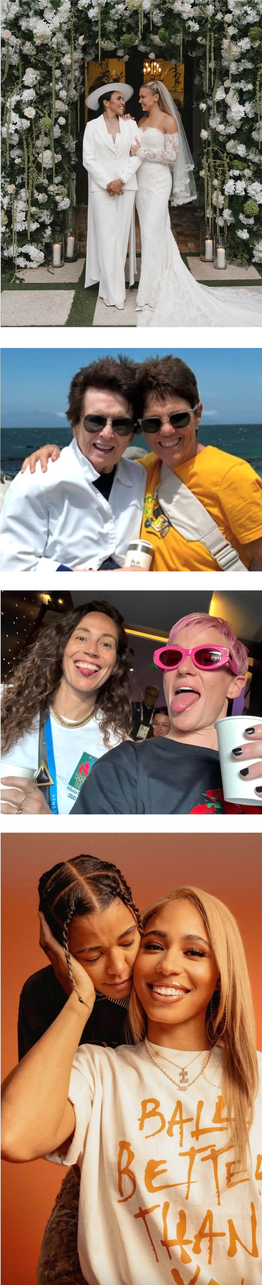 Other couples to have on your radar include: Paige Bueckers and Azzi Fudd; Kahleah Copper and Binta Daisy Drammeh; Alyssa Thomas and DeWanna Bonner; DiJonai Carrington and NaLyssa Smith; Tierra Ruffin-Prat and Victoria Vivians; Maddy Westbeld and Olivia Miles; Vivianne Miedema and Beth Mead; Christen Press and Tobin Heath.