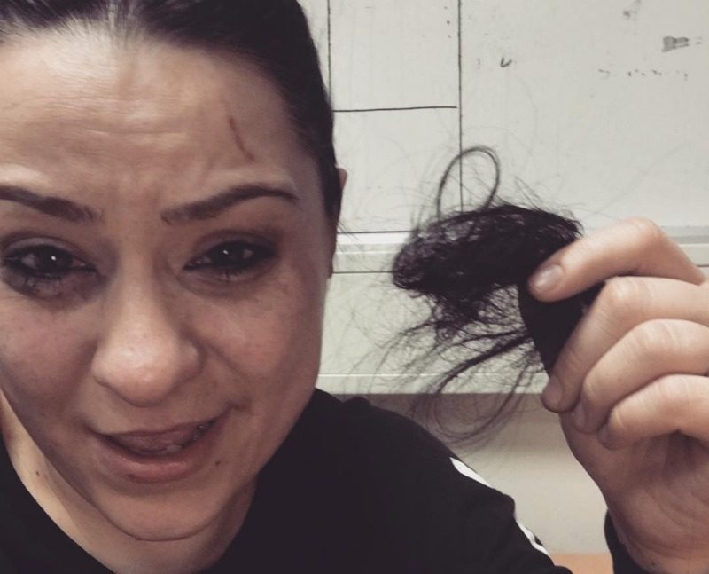 “That’s my own hair. Was attacked tonight after the show in Brighton, along with my guitarist and wife.”