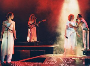 Filled with Latin chanting, harmonizing and religious themes, the Electric Ordo Virtutum differs greatly from what we think of as opera today. Though the women do sing in beautiful operatic soprano voices, they also use colorful lighting, intricate costuming and smoke machines, which give their performances a rock concert vibe.